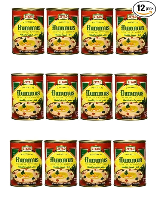 Ziyad Premium Hummus Tahini With Hot Chili 12 Cans 14oz 400gm Each